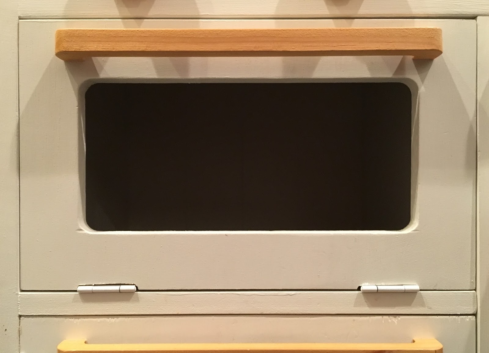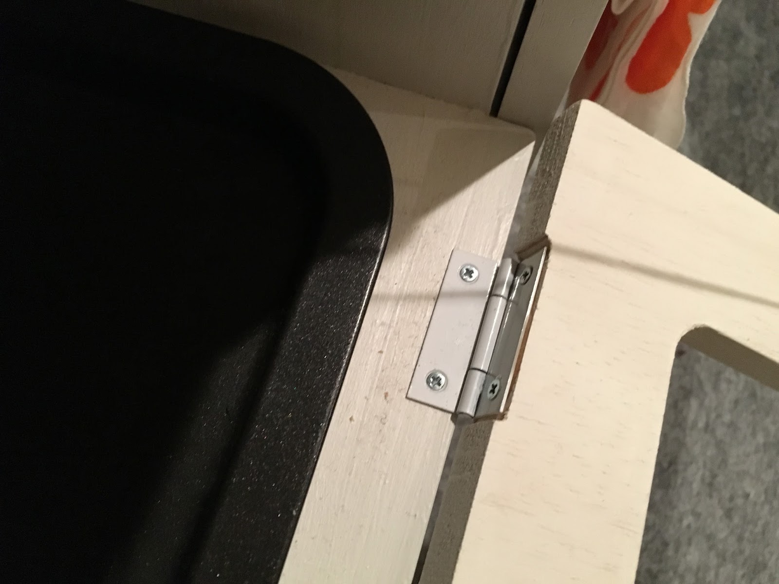 私も現在ままごとキッチンの製作中なのですが、扉が縦開きのオーブンの取り付け方に困っています。