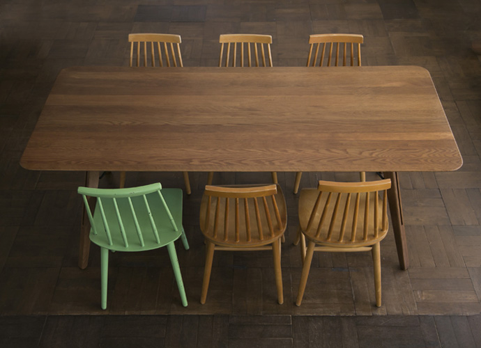 古材を使ってることがポイントで、それがとても良かったのですが、それゆえ天板の表面がガタガタしてるので、子供が絵を描く時とかは下敷きが必要という点がやや気になったり、食べ物を派手にこぼした時とかどうなるんかなとか不安がいくつか。。